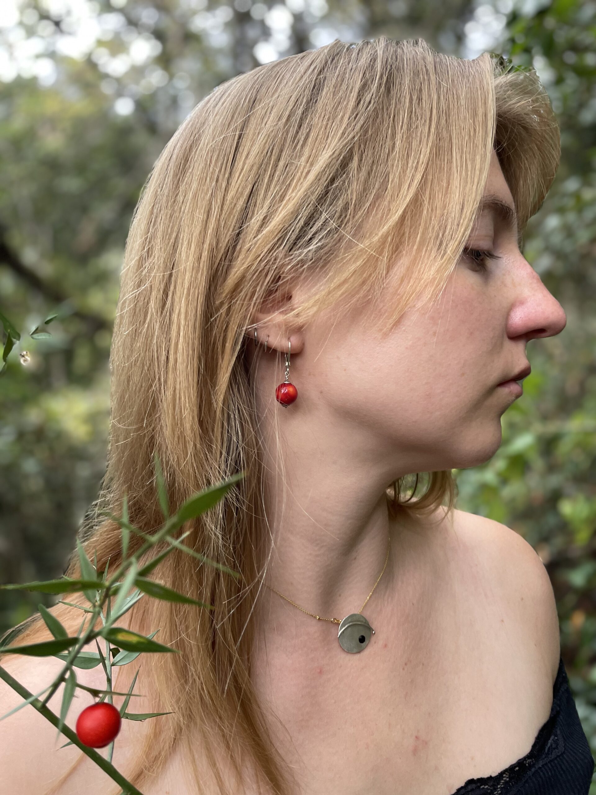 korallpärlitega kõrvarõngad